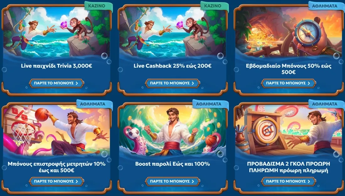 - Εβδομαδιαία επιστροφή μετρητών: απολαύστε κουλοχέρηδες καζίνο και άλλα παιχνίδια για να ενεργοποιήσετε μια εβδομαδιαία επιστροφή μετρητών 15% έως και 3.000 €.